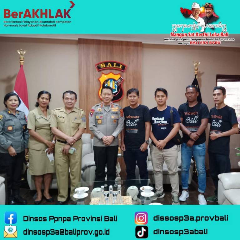 Dinas Sosial P3A Provinsi Bali melakukan sinergi kemanusiaan bersama Kapolda Bali serta Relawan Bali di Kantor Kapolda Bali tanggal 1...